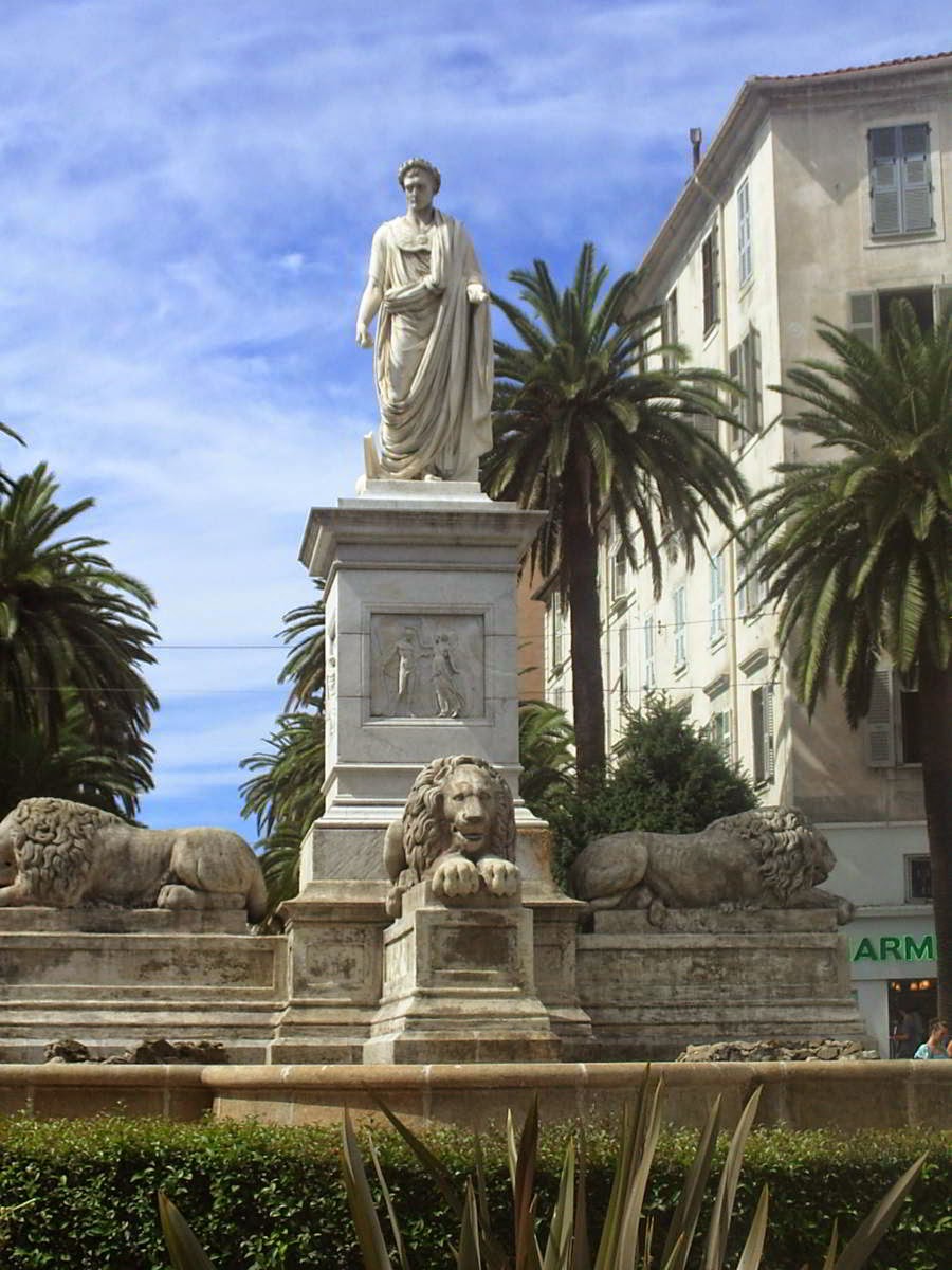 Al retorno del bus te topas enfrente con la Place du Foch mirando de frente a la bahía. La plaza, estilo rambla, viste sus laterales con palmeras y en su fondo encontramos la primera estatua dedicada a Napoleón, quien vestido con una toga romana se alza sobre una fuente con cuatro leones. En el margen derecho del boulevard se encuentra el Hótel de Ville. Es el Ayuntamiento y en su primer piso, en el salón Napoleónico, se exhibe el acta de nacimiento de Napoleón así como retratos de la familia y una colección de medallas militares. Por detrás del Ayuntamiento encontraréis la Oficina de Turismo, en el Blv. Du Roi Jerome.