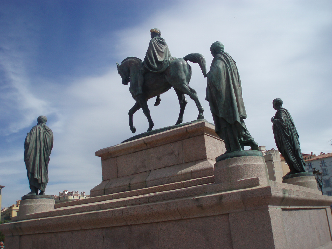 A la mitad del recorrido de la playa Saint Francois, en el Bv. Pascal Rossini, a vuestra izquierda encontraréis la Place De Gaulle. Es una de las plazas principales de Ajaccio, conocida también como Place du Diamant, y en este caso la estatua rinde homenaje a Napoleón Bonaparte, vestido como el Emperador de Roma y acompañado por sus cuatro hermanos. Desde allí tenemos unas excelentes vistas del mar.